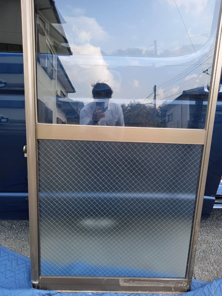 玄関引き戸の型板ガラスを交換しました。昔は型板ガラスにはさまざまな柄がありましたが、現在は日本板硝子の霞柄やAGCの梨地柄など、限られた柄が主流となっています。